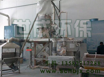 DMC-80型脈沖布袋除塵器的工作流程: 混料機、冷卻桶、移動斗車裝料房內漂逸起來的粉塵,經各個排風口進行收集,通過接入各排風口的分支風管進入除塵系統主風管。在混料機投料進口和移動斗車裝料房斗車入口均設置粉塵外逸控制裝置。各分支風管接入除塵系統主風管位置均設有調節碟閥。含塵氣體經主風管進入脈沖袋式除塵器,粉塵被阻留在濾袋外,干凈的氣體經